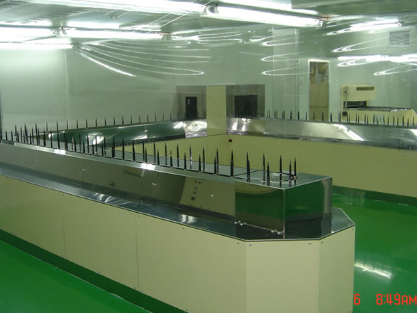 5、空調送風部分: 組合式空氣處理機組+冷水機組+高效送風口,有恒溫恒濕要求的需要配備除濕機、加濕器等設備。組合式空氣處理機組里含有各種功能段,如混合段、初效過濾段、表冷段、二次回風段(或中心段)、加熱段、加濕段、中效過濾段、風機段等。其冷源由冷水機組供給。